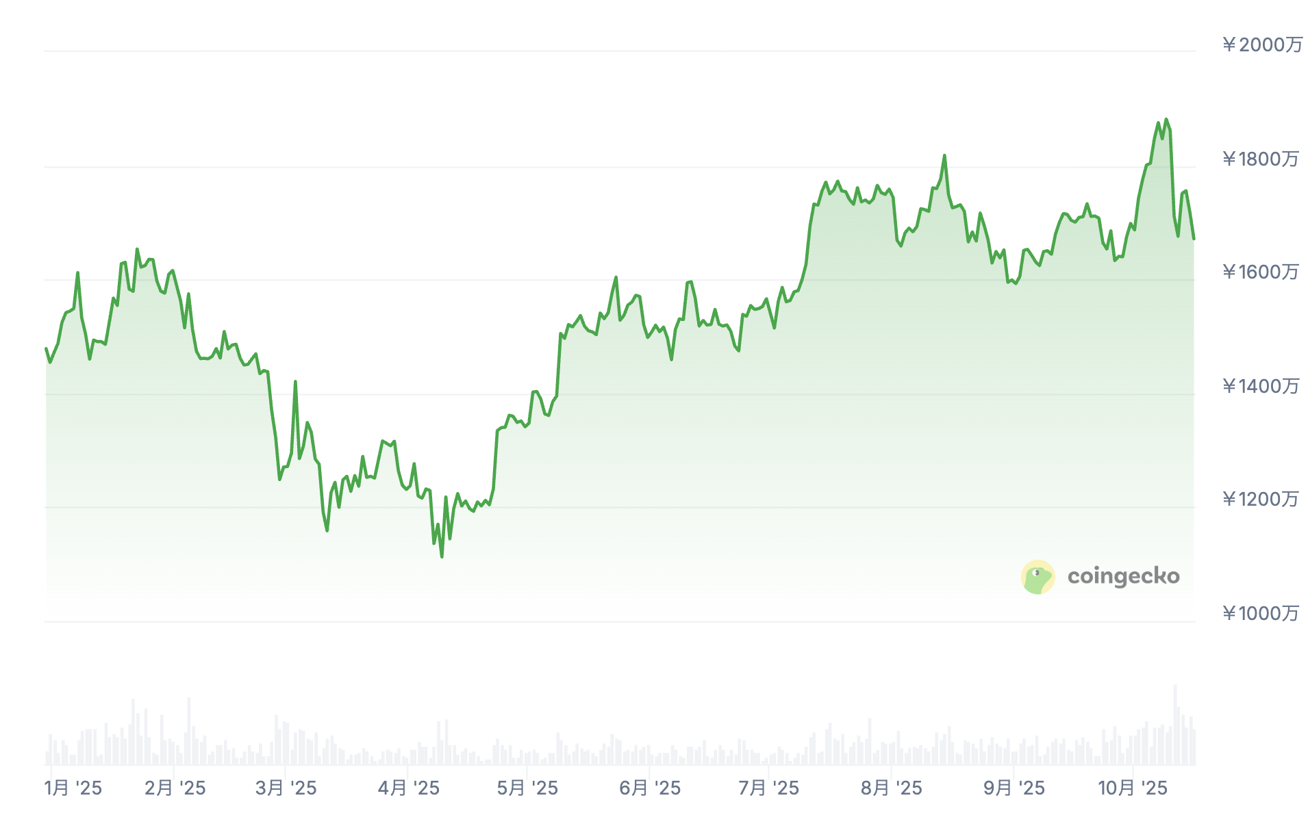 最高値: 約1,882万円(2025年10月)